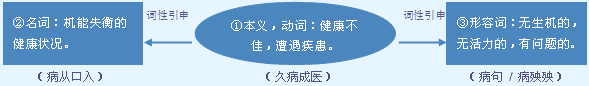 | 释义 | ![]() 生病: 他已~了几天了。 愈 yù 老人早已病~出院。 ★ “愈”属于书面语。 生理或心理上发生的不正常状态。 a.作主语。 他的~好了|~宜早治,你就别拖了。 b.作宾语。 天黄有雨,人黄有~|我没有~|真没想到你还会看~。 生理或心理上发生不正常状态。不及物动词。常作谓语,可带补语,有时可带施事宾语。 他~了|奶奶一直~着|妈妈~了两个多月|他一~数月|我长了这么大,只~过两三次|她大~了一场|老王~在广州了|你再~下去,非住院不可|他~得很厉害|他~得吃不下东西|家里~着一个人|昨天又~了几个人|今天又~倒了三个同学。 【词语】 病变 病虫害 病毒 病入膏肓 病灶 病症 字源解说 疒,甲骨文 附 文言版《説文解字》:疒,倚也。人有疾病,象倚箸之形。凡疒之屬皆从疒。 附 白话版《说文解字》:疒,倚靠。人有疾病,像靠着、挨着的样子。所有与“疒”相关的字,都采用“疒”作边旁。 字源解说 丙,既是声旁也是形旁,是“柄”的省略,表示抓握的手把。病,篆文 附 文言版《説文解字》:病,疾加也。从疒,丙聲。 附 白话版《说文解字》:病,疾痛加重后形成的症状。字形采用“疒”作边旁,采用“丙”作声旁。 引申线索 ![]() 【字族索引】 丙 【同音字】 bìng |