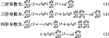 从(2)式可看出:输出的一阶导数信号与试样浓度呈线性关系,其测定灵敏度依赖于摩尔吸光系数对波长的变化速度。 同样可写出其余高阶导数方程