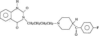 | 释义 | 布坦色林 C24H26FN3O3=423.49 CAS-87051-46-5 3-[4-[4-(对-氟苯甲酰基)哌啶基]丁基]-2,4(1H,3H)喹唑啉二酮。 3-[4[4-(p-Fluorobenzoyl)piperidino]butyl]-2,4(1H,3H)quinazoline dione. 降压药,5-羟色胺拮抗药。 Butanserin,R 53393. INN,USAN.