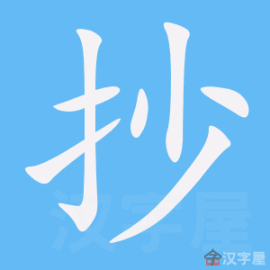 chāo ❶动照着原文或底稿写。抄笔记|照抄照转|抄三遍|传(chuán)抄。 →❷动抄袭❶。这篇文章是抄来的|不要抄别人的作业。 抄 2 chāo ❶动搜查并没收(财产等)。家产被抄了|查抄 ○❷动从侧面绕过去或走近道。抄到敌人后面去进攻|抄小道儿近得多|包抄 ○❸动两手在胸前交互插入袖筒。抄着手站在那里看热闹。 抄 3 chāo 〈口〉动抓;拿。▷抄起一根棍子|抄家伙|◇抄起活儿就干