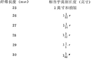 希腊棉花长度以毫米为单位,分25、26、27、28、29、30共6个档次(相当于英寸),即: