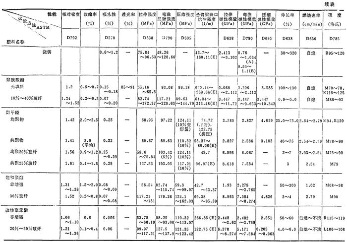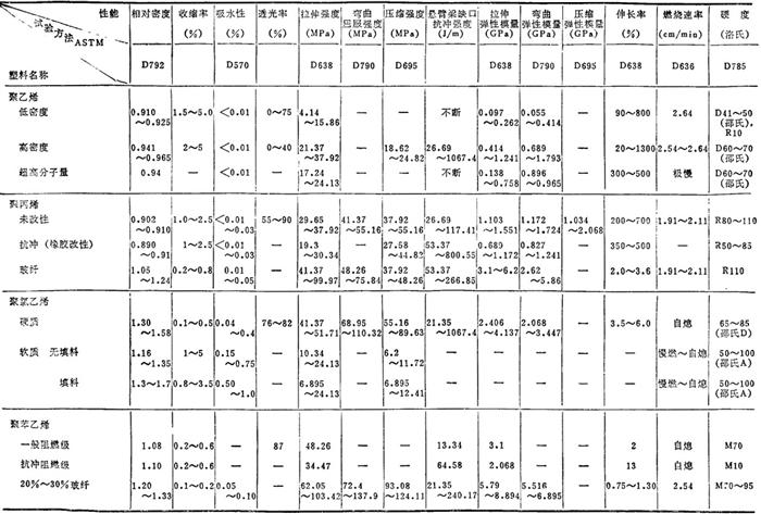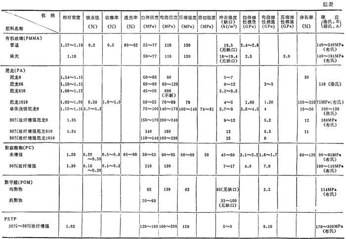 | 释义 | 常用塑料各种性能简介 1.3.1 常用塑料的各种性能 常用塑料的物理、力学及热、电性能见表2.2-4、2.2-5;国产主要塑料的物理、力学及热、电性能见表2.2-6、2.2-7。 表2.2-4 常用塑料的物理、力学性能