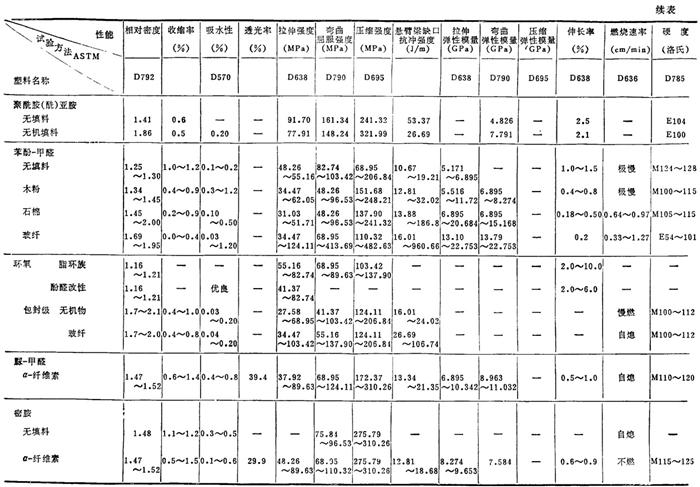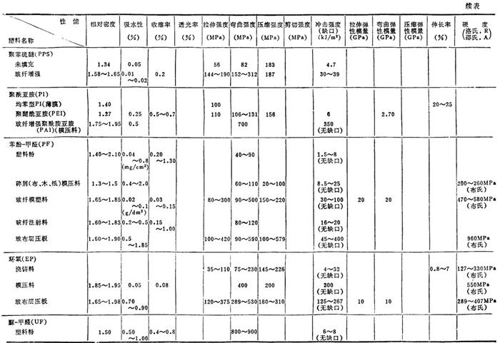 注: ❷ 表中数据均为由英制换算而得。 ❸ 各性能的含义见表2.2-9。 表2.2-6 国产主要塑料的物理、力学性能