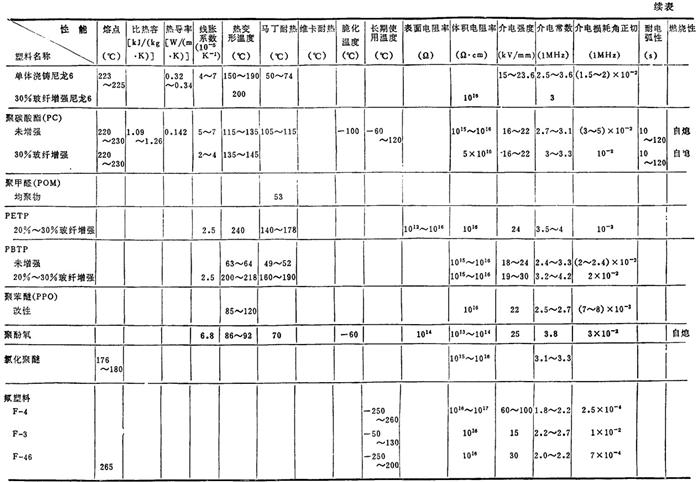 注:各性能的含义见表2.2-9. 表2.2-7 国产主要塑料的物理(热、电)性能