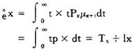 Tx——lx的人口于x岁以后生存的年数总和