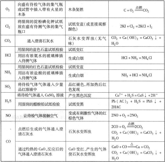释义 常见气体的检验