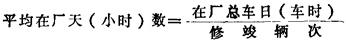 | 释义 | 平均在厂天(小时)数 车辆修理或保养平均在厂(场)的天数(小时数)。应按不同修理类别与保养级别分别统计。其计算公式为: