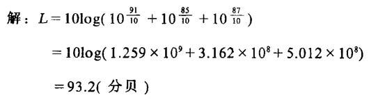 式中 Li——第i级的平均声压级(分贝) [例]求声压级为91、85、87分贝的三个噪声合成声压级。