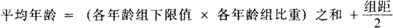 平均年龄还可以从年龄组人数比重计算,计算公式是: