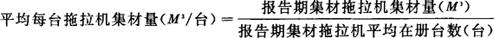指报告期集材拖拉机集材量与报告期集材拖拉机平均在册台数之比。是反映每台集材拖拉机生产效率的指标。其计算公式为: