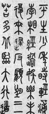 【简介】: 近代·叶爲铭书。纸本。篆书。凡四行,共六十五字。刊于《民国时期书法》(中)。 【赏析】: 淸代篆、隷大盛,名家高手辈出,这种风气延续至今不衰。叶爲铭的《篆书轴》便是这种风潮余波的明证。此作係大篆,书风颇近《石鼓文》,详察细审之似又掺入钟、鼎、盘、彝等西周铜器铭文的笔意。作品在古意盎然的气息中表现著书家自己的艺术情调。笔法圆润秀婉,通达流畅,富于弹性的线条如铁丝委曲盘旋,柔而弥刚。结体上尤具匠心。凡左右结构者多作左低右高,如“轻”、“溢”、“驱”等字,仰起俯接,形成参差错落的组合,如雄雌双鸟颉颃上下,若即若离处更有几分亲昵的情态。凡上下结构者多作上短下长,如“乐”、“忽”、“来”、“黄”等字,稳稳托承起字的重心,如高塔摩天气势巍然而基座十分安稳。这种独到的结构处理,突破了一味求匀称、均衡的传统模式,产生了平中见奇,稳中有变,险夷互生的强烈艺术效果。活泼生动的体势,令人读来没有观赏一般篆书那种整齐划一厌厌无生气的沉闷感。整体看来,谨严处并不塞迫,宽疏处未致松散,意气涵合而又神采焕发。形体无论修长者,整练者,朴厚者,绵密者,秀婉者,皆典雅大方各有表现,字字经得起推敲玩味。