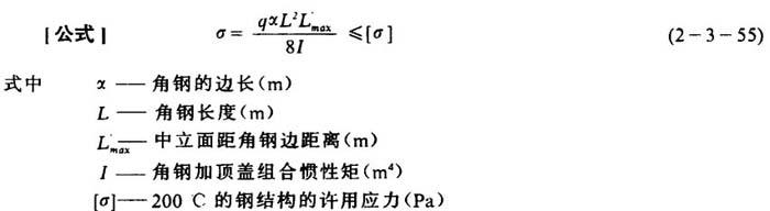 s——顶盖厚度(m) c——附加厚度(m),见式2-3-9 ❷ 角钢最大应力校核计算