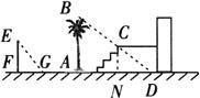 解 延长BC交地面于D点,作CN⊥GA,N为垂足.∵EG∥BD,∴∠EGF=∠BDA. 又∵∠EFG=∠BAD=90°,∴△EGF∽△BDA,∴ [解析] 影子既落在地面上又落在台阶上,如果假想光线能穿透台阶,那么就转化为熟悉的、已知的比例线段的计算. |