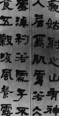 | 释义 | 庄子逍遥游篇四条屏 【简介】: 淸·何绍基书。纸本。隷书。凡八行,共六十一字。全四幅,各幅139.9×36.2cm。上海博物馆藏。刊于日本《中国书道全集》(八)。