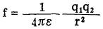 式中的ε为电荷所在介质的介电常数。力的方向沿两电荷的连线,且电荷同号时为斥力,异号时为引力。