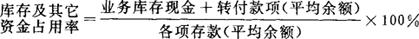 指一定时期内银行库存现金及其它资金占用与各项存款之比率。反映银行库存及其它资金占用的水平。其计算公式: