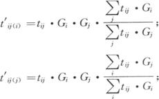 式中:T′i、Ti——分别为i区将来的和现在的出行发生量。但通常第一次计算结果,两者不相符合,为此必须乘以校正系数。 |