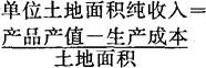 单位土地面积纯收入是扣除生产成本之后的产出收入。其计算公式为: