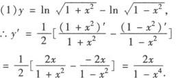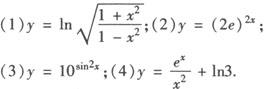 (2)y′=(2e)2xln(2e)·(2x)′ =2(2e)2x(ln2+1). (3)y′=10sin2xln10·(sin2x)′ =108in2xln10·2sinxcosx. =10sin2x·ln10·sin2x.