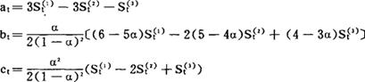 式中: Xt表示时间序列第t期数值; (2)求二次指数平滑值,公式为: