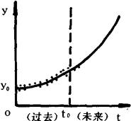 如果预测事件的一组观测值数据(如时间系列)的变化发展趋势符合指数增长规律,建立该指数曲线方程,并据此作为预测的数学模型来预测事件的未来发展趋势与状态的方法称为指数曲线法。 由于该法外推预测,规律、方法比较单一、简便,故亦常称为简单外推法。 指数曲线主要用于研究事物在发生质变以前的发展速度与变化趋势。对于技术领域的预测来说,指数曲线适用于单元技术功能这一层次的预测,从这一层次的预测,可以过渡到它们的高一层次即技术系统或基础科学与应用科学发展的预测。对于经济领域的预测来说,指数曲线适用于经济特性参数稳定增长且远离极限值的各种经济特性参数增长的预测。 指数增长曲线如下图:  图中纵坐标y表示技术发展或经济增长的某些可以计量的功能特性参数,如速度、产量、产值等,横坐标t表示时间,t0表示现在时间,t0以前表示过去时间,t0以且表示未来时间。如果把图中纵坐标变换为对数坐标,而横坐标保持不变,则得到半对数坐标的指数增长曲线,如下图:  在半对数坐标系中的指数增长曲线是一条直线。 利用这样的直线,将大大有利于趋势外推。 在利用指数曲线进行外推预测时,必须满足下列三个基本条件:(1)待预测的功能特性参数(如飞机速度、电站容量、计时精度、光源效率、产品销售量……)与时间的关系必须符合指数增长的规律;(2)半对数坐标系中指数增长曲线的斜率应是保持不变的,这是由于特性参数未来的增长规律与过去的增长规律完全相同;(3)功能特性参数的预测区间必须远离饱和点即极限值。 指数曲线方程为: y=yoekt 式中,yo为t=0时的技术功能特性参数或经济参数,k为比例常数,t为时间或其它可以定量表述的因素。 上式经对数变换得线性方程: Y=A+Bt 如果已知有关参数的历史数据(Ti,Yj),i=1,2,…n,(如特性参数的时间系列),则应用最小二乘法便可求得线性方程中之系数A,B值,从而可以根据指数曲线方程进行有关预测。 |