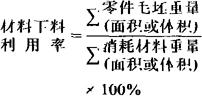 在材料下料过程中,得到的零件毛坯总重量(面积或体积)与消耗的材料总重量(面积或体积)的百分率。