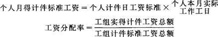 个人本月实得工资=个人应得月计件标准工资×工资分配率