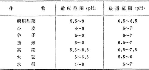 甜菜最适宜的土壤是黑土层厚、排水良好,土温易于增高的腐植土、壤土、砂质壤土,尽可能要具有同样结构的底土。在机械组成中等的比较粘重、疏松和碱性土壤上也可以种植。酸性土壤是不适宜的,作物对酸碱度的适应见表1-6。不适宜于粘重的土壤上栽培,也不适于渗透性不强的积水和过湿的土壤上种植。总之,改善底土以上的整个耕土层的土壤特性,同时施入充足的有机肥料,保证在生长期间的水分和养分的供应是获得产量的适应条件。