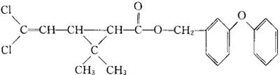 | 释义 | 氯菊酯 又称二氯苯醚菊酯、NRDC、143、Pounce。 化学名称:3-苯氧基苄基-2,2-二甲基-3-(2,2-二氯乙烯基)-1-环丙烷酸酯。化学结构式如下。工业品是淡黄色油状液体,含有(土)、顺式及反式4种光学异构体。熔点约35℃,沸点198~200℃/40.0Pa,25℃时蒸气压453.3×10-7Pa,密度1.190~1.272(20℃)、溶解度30℃时水中的溶解度0.007±0.002mg/L。 易溶于二甲苯、丙酮、甲醇、乙醚。对光稳定,农田残效期6~7天,对高等动物低毒,急性口服LD50大鼠为1200mg/kg,经皮LD50大鼠>500mg/kg、小鼠为600mg/kg,吸入LD50大鼠>23.5mg/L。 静脉注射LD50大鼠>450mg/kg。对鱼类剧毒虹鳟LC50为0.009mg/L(96h)、蓝鳃LC50为0.0032mg/L。对禽类低毒,鹌鹑急性口服LD50>1350mg/kg,使用10%乳油含有效成分10~50mg/kg,防治稻、麦、棉、果树、蔬菜、林木及经济作物上的蚜虫、叶蝉、飞虱及黏虫、小地老虎、棉铃虫、棉红铃虫、果树食心虫类、烟青虫、菜青虫、小菜蛾等,还可以配制油剂及气雾剂防治卫生及牲畜害虫,如蚊、蝇、蟑螂、臭虫、厩蝇、牛虻、鸡虱、狗蚤、头虱及体虱。 自从70年代中期在世界各地使用以来,部分地区的棉铃虫、棉红铃虫、棉蚜、稻飞虱、菜蚜、库蚊,美洲大蠊,家蝇已经产生抗药性群体,此外已经证实与其他除虫菊酯有明显地交互抗药性。