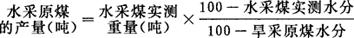| 释义 | 水采原煤产量 指运用高压喷射水流方式开采的原煤产量。 由于水采原煤中水分含量过高,因此对不入洗的水采原煤产量,应以条件相同的旱采原煤的全水分为基础进行折算。其计算公式为: