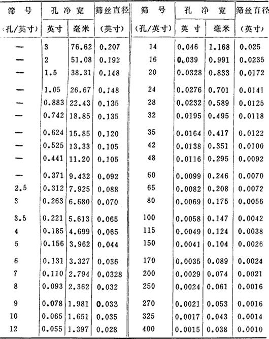 表6-72为英制筛网数据。 表6-72 英制筛网数据(筛号是每英寸长度的筛孔数)