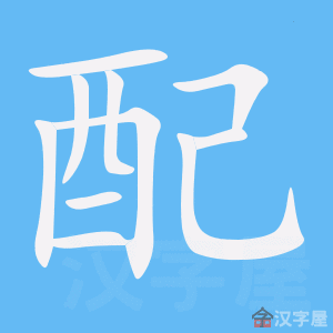| 释义 | ![]() ❶两性结合。作带宾、带补谓语。 ~种|~马|~牛|种猪少,~不过来。 ❷按适当的比例加以调和;把缺少的补足。作带宾、带补谓语。 ~药|~颜色|~零件|~钥匙|这曲调~得好|这两种颜色~不上|把水泥和沙子~起来用。 ❸衬托,陪衬。作带宾、带补谓语。 红花~绿叶|把两种摆设~到一起来|这段曲子宜用古筝来~。 ❹相当;够得上。所指称的对象仅仅限于人,且多用于口语。作带宾、带补谓语。宾语可以是非名词性词语。 只有这样的人才~称先进工作者|你怎么会姓赵——你哪里~姓赵!|我的画不~放在这么漂亮的镜框里|这个姑娘~得上他。 【词语】 配搭 配对 配给 配件 配角 配料 配偶 配售 配套 配乐 配音 配制 配置 配种 字源解说 配,甲骨文 附 文言版《説文解字》:配,酒色也。从酉,己聲。 附 白话版《说文解字》:配,(控制)酒的成色。字形采用“酉”作边旁,采用“已”作声旁。 引申线索 ![]() 【字族索引】 配 己 【同音字】 pèi |