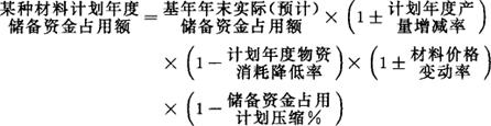 式中的基年年末实际储备资金占用额应采用合理的储备额,如有因盲目采购而造成的不合理储备应予扣除。对于需要的储备量与产量变动无关的固定型材料物资储备,在计算时不考虑产量增减率。 |