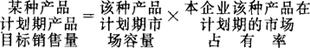 指企业某种产品在计划期内要求达到的销售量。它是根据国家计划和社会需要以及本企业产品的市场占有率来确定的。其计算公式为: