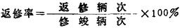 式中“返修辆次”指修竣出厂的车辆在一定里程内由于保修工艺责任或因材料、配件质量不好等原因回厂再次进行修理的辆次数。一辆车返修一次,即计算一个返修辆次。返修后出厂车辆不再计入修竣辆次。返修率是考核汽车修理企业保修作业质量的统计指标。