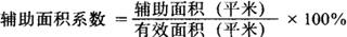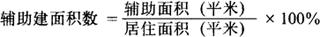 指辅助面积与居住面积或有效面积之比。计算公式为: