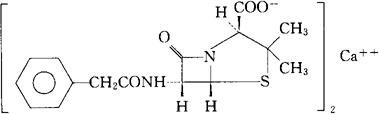 C32H34CaN4O8S2=706.84 CAS-1406-07-1 CAS-61-33-6(penicillin G) 3,3-二甲基-7-氧代-6-(2-苯乙酰胺基)-4-硫杂-1-氮杂双环[3.2.0]庚烷-2-羧酸钙(2∶1)。 Calcium 3,3-dimethyl-7-oxo-6-(2-phenylacetamido)-4-thia-1-azabicyclo[3.2.0]heptane-2-carboxylate,(2∶1). 抗生素类药。 Penicillin Calcium,Calcium Penicillin G,Galcium Benzylpenicillinate, Benzylpenicilinic Acid Calicum Salt. USAN,USP,MI.  |