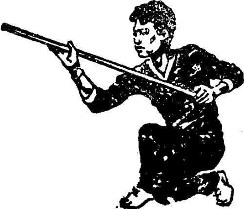 由坚韧木棍制成,长约1.20米,直径约2厘米。把粗梢细,可单手和双手握鞭杆进行演练。