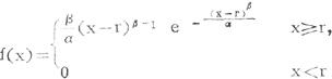 瑞典人韦布(W Weibull)提出。 设随机变量x的密度函数为  其中:β>0称形状参数,r称位置参数,α>0称尺度参数,则x服从韦布分布。它导源于计算链的失效概率或单个环被拉断的概率。 这种模型适用于由某一局部失效,便引起全部机能停止的现象,是可靠性分析中最常用的最复杂的一种分布。 由于它形式多样,易于得出适合各种故障形态的数学模型,在可靠性分析中应用广泛。 其中,当β接近 时,它近似正态分布;β=1,r=0时,为最有用的特殊情况之一,指数分布。 韦布分布的计算有矩法和最大似然法,但过于繁复。 实际中多用韦布纸以图解法实现。 当α=2,β=2,r=0时为  即在噪声理论和海浪理论中很有用的瑞利(Rayleigh)分布。 |