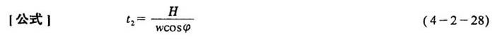 式中 t2——颗粒在斜板部分停留时间(s) H——斜板间距(m) w——沉降速度(m/s) φ——斜板倾角(度) |