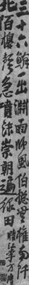 【简介】: 淸·李方膺书。纸本。行书。凡两行,共三十三字。扬州博物馆藏。刊于《中国书法》一九八七年第四期。
