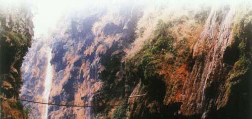 | 释义 | 马岭河峡谷风景名胜区 马岭河峡谷风景名胜区是国家重点风景名胜区,位于兴义市东南部。距兴义市4公里,距离贵阳330多公里。 马岭河峡谷风景区处于云贵高原的乌蒙山与广西丘陵之间,属喀斯特地貌类型景观,具有谷秀、峰奇、湖美的自然景观特点。马岭河峡谷风景区由三大景区合成,这三大景区是马岭河峡谷、万峰林和万峰湖。 马岭河又叫做清水河,其源头起于乌蒙山山脉,在兴义市的境内,河谷南北总长80公里,平均宽度为200米岸高120—200米。景区面积1200平方公里。 河谷中景色最美的一段约7公里,就在兴义市区的附近,这就是马岭河峡谷,位于马岭河峡谷风景区的东北部。严格说来,马岭河峡谷是湍急的河水与地下暗河把地表撕开的一条裂缝带,在河水中乘舟仰头观看就会发现,这峡谷是一道天沟,也有人称马岭河峡谷为地缝。 由兴义市的马岭河起步,沿河谷下行,沿岸峭峰林立,怪石嶙峋,森林茂密,藤萝如织,修竹成林,百瀑争流。还有幽谷古洞、岩画彩崖,具有奇、幽、险、秀、壮的审美特征。峡谷北部有彩崖峡,高120米,长500米,灰褐色崖壁上,有许多条桔红、果绿、酱紫、灰白色竖画的彩色线条,粗细长短不一,远望如彩带垂挂,倒映水中,随波荡动,甚为幻丽。彩崖峡下游有石窟崖,高约100米,长约200米。桔红色的巨大岩壁上,布满各种天然艺术造型,有横生竖长、奇形怪状的钟乳石;有飞禽、走兽、游鱼、昆虫、龙蛇、树木、花卉,异形诡状,令人惊绝。沿河而下有徐霞客曾走过的“飞虹锁天”古桥、回峰崖、五里幽谷、瀑布群、壁挂崖、男女泉、万峰林等景观,壁挂崖是一处巨大的由碳酸钙变异而成的岩页壁挂,面积达10万平方米。有赭红、深褐、浅灰三色,层层叠叠地“挂”满各种各样的动植物造像,或如丝瓜、花束、蕉叶、云朵、灵芝,或似雄鹰、猿猴、虬龙,视角不同所见物像也不同,变幻莫测。 马岭河峡谷瀑布群颇多,仅仅7公里长的峡谷两岸,竟分布有长流瀑布和汛期瀑布70多条。壁挂崖一带是瀑布最密集地段,在1.7公里内有瀑布13条,依其形态分别名曰珍珠瀑、彩虹瀑、面纱瀑、捞月瀑、洗心瀑、飞厅瀑、间歇五叠瀑、万马咆哮瀑等,各具情采。其中最著名者为落差达100多米的珍珠瀑和彩虹瀑,前者冲崖而下散为万斛珠玑,漫空洒落;后者倾泻而下直捣谷底腾起一片水雾,阳光下映出美丽彩虹。马岭河峡谷中这70余条瀑布有“七十二瀑落一河”之说,其中高度超过雁荡大龙渊者即有7条之多,为国内瀑群之冠,在群瀑之间还有一种为时光所凝固的钙华瀑,是由水流中的重碳酸钙不断沉积附著于崖壁形成的奇特景观,阳光下银光闪烁,极为壮丽。马岭河峡谷两岸的崖壁比较独特,层层叠叠,嶙峋峥嵘,瀑布由崖壁跌落,与崖壁成为一体跌至谷底后,就形成了一座天然浴场,景区内著名的霞光浴场就是这样形成的。 自二十世纪九十年代初开始组织漂流活动以来,马岭河峡谷谷底漂流也称马岭河地缝漂游已成为一顶颇受欢迎的项目。漂流流程长达12公里,天然落差达200多米,自上游的野马滩、猛虎岸、犀牛坎、龙腾关、幸福潭,到达宏瀑终点,漂游中有惊无险,两崖奇景目不暇接,被誉为“神州第一漂”。 马岭河峡谷下游天星桥至南盘江一带,以典型喀斯特盆谷峰林地貌而著称。危峰林立,如万笏插天,为万峰林景区,分为东西两部分,面积达200平方公里。河东岸的峰林称为东峰林,河西岸的峰林称为西峰林。东峰林的特点是呈现喀斯特峰丛型式,山峰为宝剑型,粗犷大气。西峰林的特点是呈现高原喀斯特峰阵型式,山峰连延,宛若兵阵。峰林中,有原始森林和多种珍贵野生动物,有古洞幽壑、河谷涧溪、山寨田园。构成峰内有谷,谷中有峰,峰中有洞,洞中有峰,峰里有田,田里有峰,峰下有寨,寨下有峰的罕见景象。相传徐霞客曾两次来游,有“天下名山何其多,唯有此处峰成林之语。来过这里的游客,看到峰林间还有当地农人播种的作物,都一连声的感叹“贵州人真的是在公园里耕作”! 万峰湖位于马岭河峡谷风景区的下游,因有万峰林得名万峰湖。这是一个人工湖,在天生桥高坝电站建成蓄水后形成的。湖面极宽阔,面积达160平方公里,湖内有80多个岛屿和半岛,内湖2个,大小港湾湖汊50多处,沿湖岸可见众多的森林、峰林、溶洞、天坑等景观。 游客到马岭河峡谷游览,可参加“神州第一漂——马岭河地缝漂流”,参观或参与民族婚俗演示。然后游览万峰湖。还有一条参观万峰林的旅游路线,即是从兴义市出发,至五屯场坝,乘船沿河游览万峰林,沿途还可以看见几个布依族村寨,景色极美,妙趣天成。