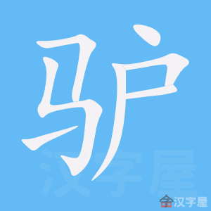 盧,既是声旁也是形旁,代表房屋,即“庐”。驴,篆文=(马)+(盧,“庐”),造字本义:在农家、作坊中服役、外形似马的力畜。隶书将篆文“马”的四足写成“四点底”。俗体楷书用“庐”代替正体楷书的“盧”。