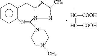 C16H20N6·C4H4O4=412.45 CAS-120360-10-3 2-甲基-5-(4-甲基-1-哌嗪基)-11H-[1,2,4]三唑并[1,5-c][1,3]苯并二氮杂 -[Z]-2-丁烯二酸(1∶1)。 11H-[1,2,4]Trizolo[1,5-c][1,3]benzodiazepine,2-methyl-5-(4-methyl-1-pipreazinyl)-,[Z]-2-butenedioate(1∶1). 2-甲基-5-(4-甲基-1-哌嗪基)-11H-s-三唑并[1,5-c][1,3]-苯并二氮杂 马来酸盐。 2-Methyl-5-(4-methyl-1-piperazinyl)-11H-s-triazalo[1,5-c][1,3]benzodiazepine maleate(1∶1). 抗精神病药。 Batelapine Maleate,CGS 13429A. INN(Batelapine),USAN.