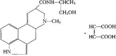 C19H23N3O2·C4H4O4=441.48 CAS-129-51-1 9,10-二脱氧-N-[(S)-2-羟基-1-甲乙基]-6-甲基麦角灵-8β-甲酰胺氢马来酸盐(1∶1)。 9,10-Didehydro-N-[(S)-2-hydroxy-1-methylethyl]-6-methyl-ergoline-8β-carboxamidehydrogen maleate(1∶1)(salt). 子宫收缩药。用于产后出血及子宫复原。 顺丁烯麦角新碱。 Ergometrine Maleate,Ergonovine Maleate,Ergofrate Malcate. 马来酸麦角新碱片,马来酸麦角新碱注射液。 INN & BP,(Ergomefrine)EP,IP,JP,USAN,USP,MI.