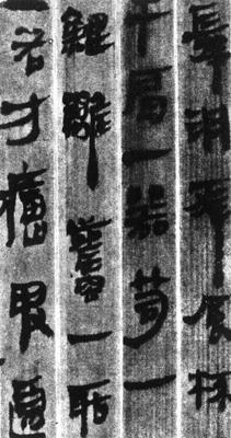 【简介】: 一九七三年湖南长沙马王堆一号墓出土。隷书。湖南省博物馆藏。《书法丛刊》十一辑收入。 【赏析】:   马王堆一号汉墓“遣策”书法以倔强拗翘的线条形式爲骨体,以坚韧纵逸的笔势爲风神,给我们留下了深沉隽永的思索。 本来,“遣策”是记录死者随葬物品的帐簿,也是死者在冥府开始新的生活的财产淸单,在“遣策”上面写字旣不同于抄书的实用,又不同于金石题铭的长久,谈不上认眞的书法创作。但是,这些“遣策”文字爲什么有如此巨大的魅力,风靡了两千年后的现代人呢? 也许是书法欣赏中的思古移情,也许是它们带来了当代书法创作的某种啓示,也许是它们那种古老形式的本身在今天的人看来富于刺激性和新鲜感,也许是人们好奇,爲了揭去覆罩在它们的形体之上的神秘面纱。不管怎么样,它们所受到的关注和宠爱是空前的,而它们也的确有著値得人们关注和宠爱之处。 我们可以看到,它那耸侧雄奇的体势、沉重粗放的长垂—这只有在后代行、草书中才能得见的神韵所在、不作任何修饰而又富于变化和藏蕴的笔画线条、凝重苦涩的笔法、疏密辉映的字形结构,无一处不具有美感,无一处不使人留目寓怀。这些内容足以证明书者艺术境界的高超,也许还包涵著一点点对死者的眷恋和悼痛、以及希望死者灵魂早昇天国的美好祝愿吧。 |