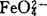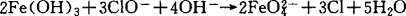 | 释义 | 高铁酸盐 1841年Fenmy首次合成高铁酸钾。 20世纪50年代左右,J.M.Schreye和G.W.Thompson在实验室利用次氯酸盐氧化三价铁盐制备出高纯度、高产率的高铁酸钾。之后,人们提出了不少工业生产性的制造方法。 如:电解法、高温过氧化物等。 另外,H.J.Hrostowski等制备出Rb+、Cs+的纯净高铁酸盐,然后用高铁酸钾与碱土金属或过渡金属反应制得Ba2+、Sr2+、Co2+、Pb2、Hg2+Ni2+Ag+Mn2+等多种高铁酸盐。1958年R.H.Wood等通过测定含水高铁酸钾与高氯酸在25℃下的反应热,计算出 酸性条件: 碱性条件: 氧化还原电位: 从电极电位值可以看出,高铁酸有强的氧化能力,可以氧化许多物质。 高铁酸根离子在水溶液中能杀死大肠杆菌和一般细菌,去除污水中有害有机物、 其它方面的研究包括:高铁酸盐作理想的磁记忆材料,以及通过控制酸钾的分解速度制造各种类型的羟基氧化铁等。 制备高铁酸盐的基本方法有次氯酸盐氧化法、电解法和高温过氧化物法(干法)。次氯酸盐法产率及纯度好;电解法原材材料消耗少,但电力消耗大,副产物多;而高温过氧化物法需要获得高温,但纯度和产率较高。 次氯酸盐氧化法:在碱性条件下,用次氯酸盐(最常用NaClO和KClO)氧化三价铁得到高铁酸盐。 反应式如下: 它可以用下面两步反应来表示: Fe3+3OH-→Fe(OH)3 (4)