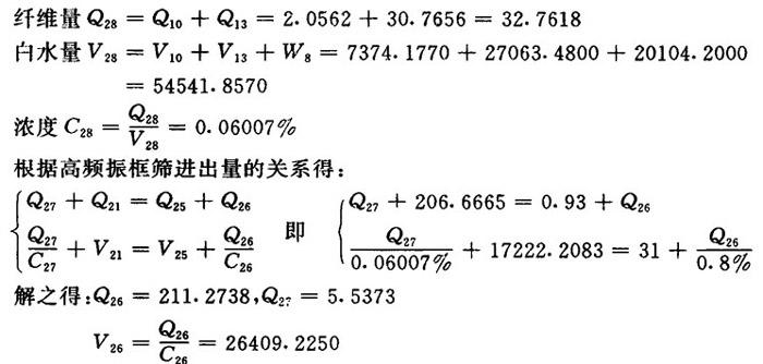 【已知】 Q21=206.6665 V21=17222.2083 高频振框筛排渣率α12=0.1%(对成品) 高频振框筛排渣浓度C25=3% 高频振框筛良浆浓度C26=0.8%