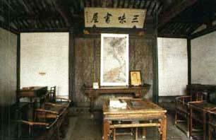 鲁迅故居 全国重点文物保护单位。位于市东昌坊新台门,原是周氏聚族而居的地方,约建于1810—1813年,为典型的绍兴台门式民居。鲁迅家居在新台门西首,为纵长式院落建筑,占地约1千平方米。房屋皆为砖木结构,前后六进。鲁迅诞生后到18岁(1898)外出求学前,一直居此。鲁迅三十岁(1910)时回绍兴教书,也住在这里,至1912年应教育总长蔡元培之邀,去南京教育部工作离开绍兴为止。 辛亥革命后,房屋卖给东邻朱姓,虽经部分改建,基本保持原状。1949年以来,陆续找回鲁迅家变卖的家具,按原样陈放,恢复故居旧貌。故居后门有园地,即鲁迅童年时代的乐园“百草园”。鲁迅《从百草园到三味书屋》一文中提到的光滑的石井栏、高大的皂荚树、紫红的桑椹、短短的长满青藤和杂草的泥墙根仍在,依稀可以想见鲁迅幼年时在泥墙根寻找蟋蟀嬉戏的情景。 三味书屋 位于东昌坊。是清末秀才寿镜吾的私塾,鲁迅少年时代读书处。 书屋正中上方悬挂著“三味书屋”匾额,系清末著名书法家梁同书所书写。据说梁氏原书是“三馀书屋”,取“为学当以三馀”之义,后由屋主寿峰岚将“馀”字改为“味”字。 “三味”的含义引起很多人的兴趣,在三味书屋教过书的寿洙邻说“三味取义,幼时听父兄传言,读经味如稻梁,读史味如肴馔,读诸子百家味如醯醢,但已忘其出于何书,至今查不著了。”也有人考证说,“三味”源自《李淑书目》。李淑说:“《诗》《书》为之太羹,史为杂俎,子为醯醢,是谓书三味。” 现在“三味书屋”匾下是一幅《松鹿图》,两侧对联是“至乐无声惟孝悌,太羹有味是诗书”,取义即此。鲁迅从12岁起就在这里上学读书,前后长达5年之久,这里的一切,对他以后的人生产生了重要影响。 鲁迅的书桌在东北角,桌面上刻一“早”字,是他因事迟到,受到先生责备,为诫勉自己而刻的。
