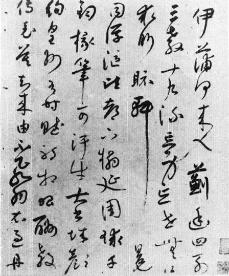 【赏析】: 草书贵动。这里所言之动,乃草书形象及其组合关係较其他字体更显飞动灵气之感。造就这样的艺术感觉,无疑对线条的表现力—即力度、质感、使转手法、节奏变化等技巧和作者的文化艺术素养诸方面,提出较高的要求。陆居仁的草书,中锋用笔,下笔的分数不大,却写出了折钗股般毛笔特有弹性的意味,线条圆韧流畅,结体颇有纵横捭阖之势。但较之明代中晚期诸家草书,尙乏鲜明的个性和恢宏的气势。 |